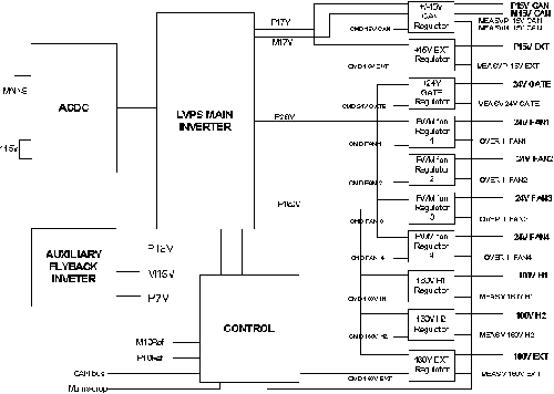 A main regulated inverter with four separate outputs : P17V, M17V, P26V, and P160V