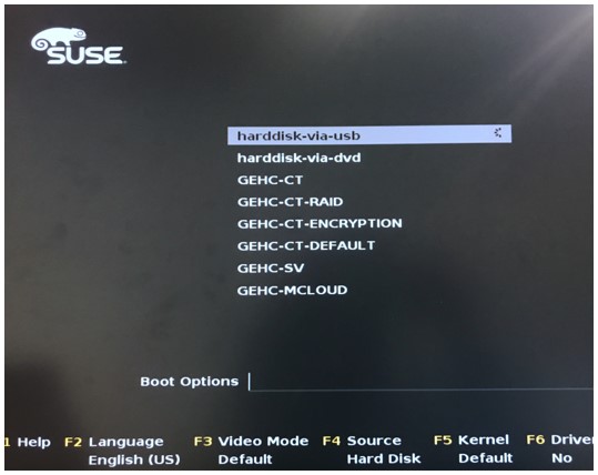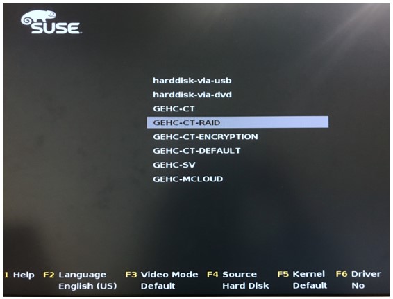 - As the Host Computer restarts, the boot process GUI appears. Select GEHC - CT -RAID.