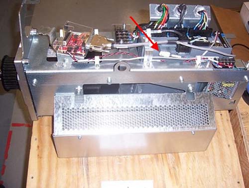 - Guide the motor assembly out of the gantry and set aside. Leave the hoist assembly set up as it will be required for the installation of the new drive.