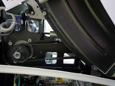 - Remove the drive belt from the drive gear. Take care to not disturb the teeth engagement along the rotating assembly.
