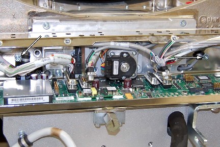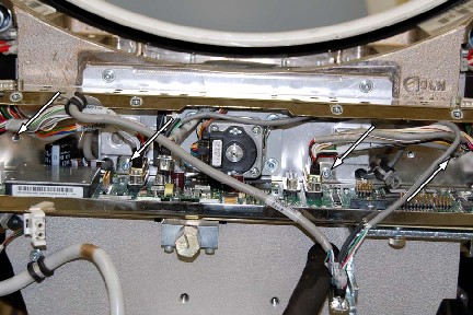 9. Disconnect connectors J3 and J4 filter motors and encoders from the CCB. Use access holes in chassis for back screws.