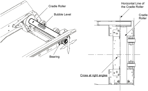 - Loosen 2 Allen screws that fasten the bearing of the cradle roller to the Table frame.