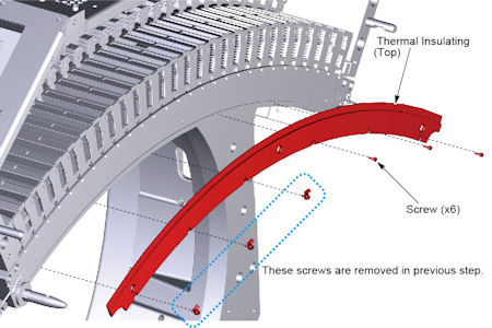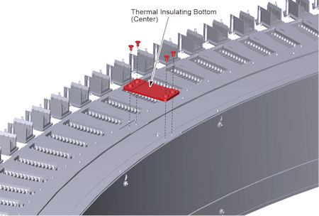 3. Remove 4 screws holding the thermal insulating bottom (Center) to the bottom collimator rail, remove the thermal insulating bottom (Center).