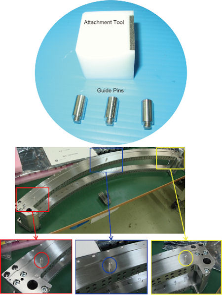 3. Set the center hole of the heater to the center guide pin temporarily, and put it to the others guide pins.