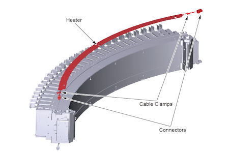 1. Connect the 2 cable connector of heater, and fix the heater cables to the bottom collimator rail using the 2 cable clamps.