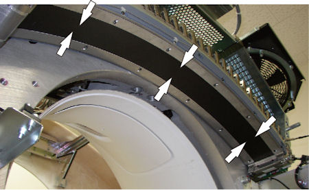 - Remove the gantry left side cover, top covers, scan window and front cover.