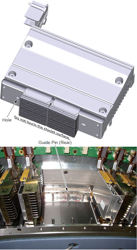 - Install the new module along the rear guide pin of the collimator