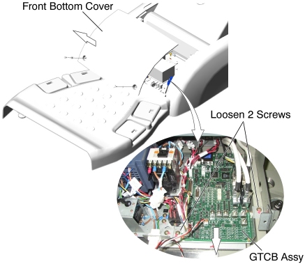 - Install the new GTCB Assy with bracket in place, and tighten the 2 screws.