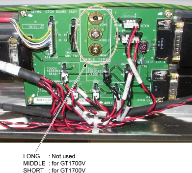 7. Install the new GTCN Assy into place, and tighten the 7 screws. One of the screws is used for Table type identification. Select the appropriate screw position depending on your Table type.