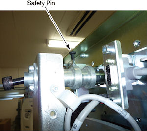 8. Pull up safety pin small knob on the bore cover top bracket and rotate 1/4 turn to keep the safety pin disengaged.
