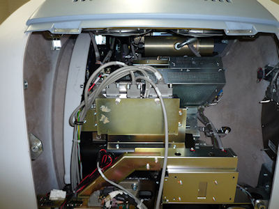 Check to make sure all top cover fans come on right after gantry power up and that the gantry blower fan on the lower left comes on. Fans come on at 50% during hardware reset process.