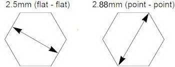 groove is 2.9mm or less.note:To measure the groove, use the 2.5mm hexagon wrench, when the wrench is measured from flat to flat, it measures 2.5mm. This measurement will be conducted using the wrench from flat to flat. If the wrench fits on the flat, it passes, if it can be rotated, it fails.