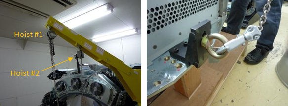 - Attach the hoist #1 (long chain hoist) to the lift hook and