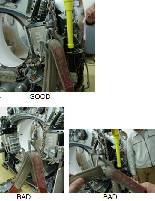 attach the other end of the slings to the hoists #2.note: