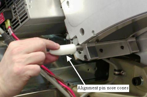 - Attach the alignment pin nose cones on each side of the detector