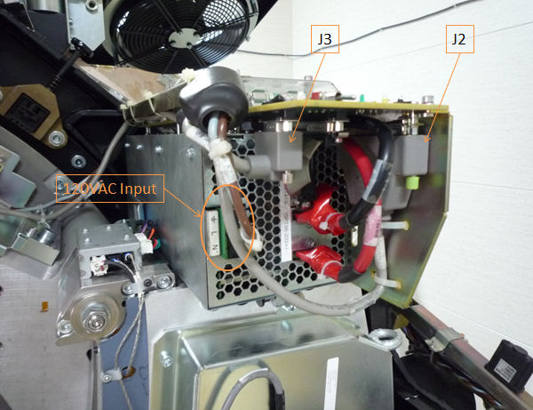 - Remove the right side gantry cover and disable Axial Drive and HVDC from the service switch panel.