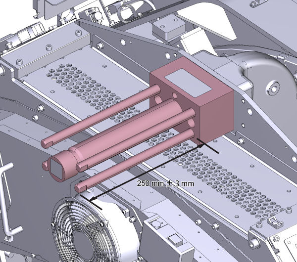 so that the length of the rod is 250 mm ± 3 mm.
