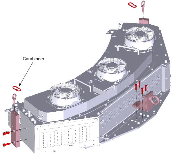 - Install eyebolts to both sides of the lifting brackets. Put