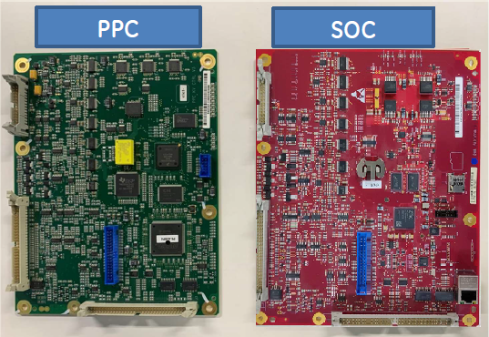 The SoC kV control board is compatible for IB systems with PPC installed, so for PPC failures, FE can order PPC or SoC kV control board FRU to replace. The PPC kV control board is NOT compatible for IB systems with SoC installed, so for SoC failures, FE can only order SoC kV control board FRU to replace.