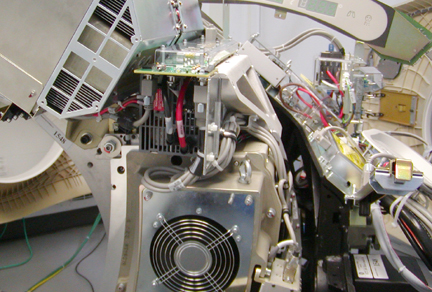 - Remove gantry side covers and disable Axial drive and HVDC from