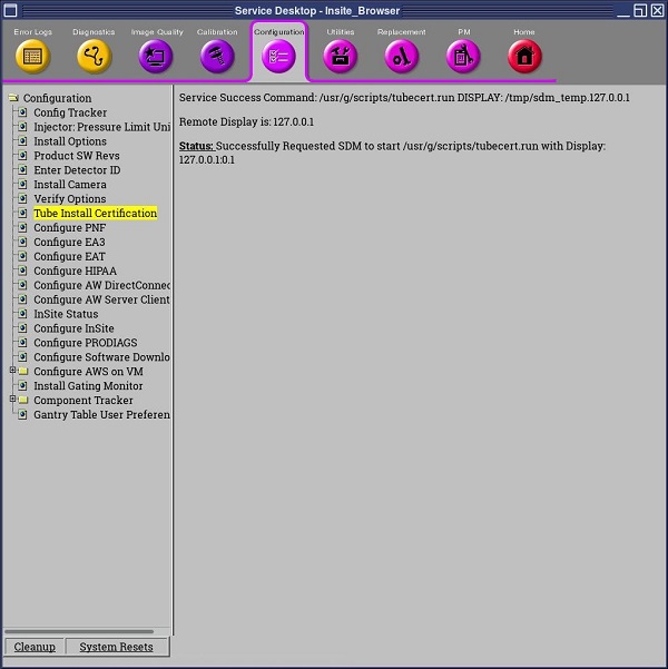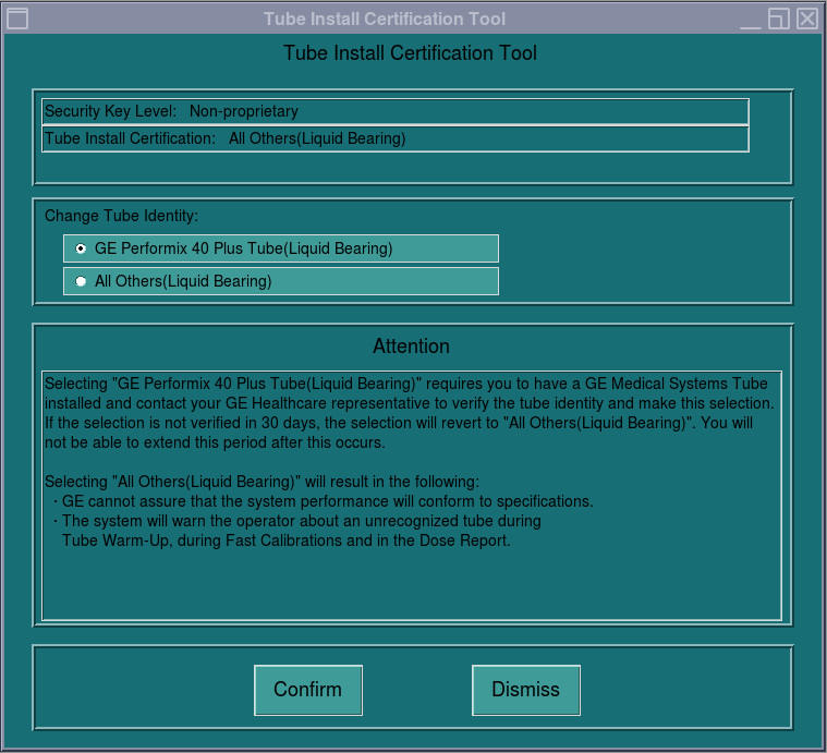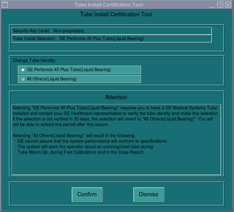 Figure 12. GE Medical Systems Tube Install Certification Screen