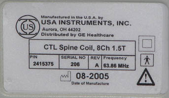 This document describes the 1.5T 8-Channel CTL Coil by GE, Catalog Number M3335MA.