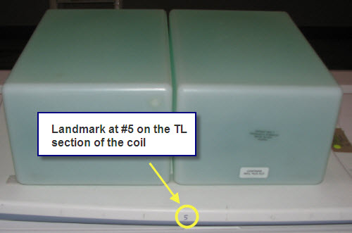 Landmark on #5 present on the side of the TL section of the coil as shown in Figure 13 and press advance to scan.