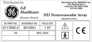 The information that follows is for the 1.5T Neurovascular Array Coil by Medrad, Catalog Number M3087JJ.