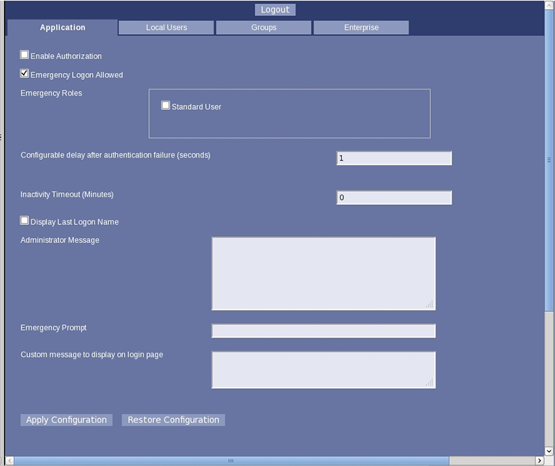 • Enable/disable an Emergency Logon feature that allows a user to log on without a password