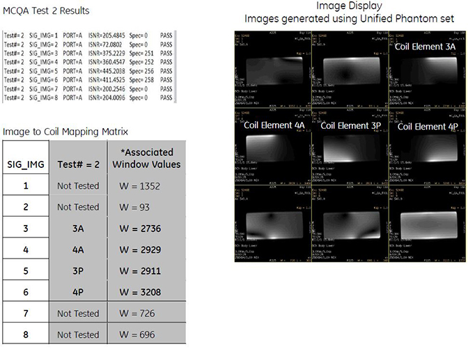 Images from coil elements being tested, but that have significantly lower W/L values, would be considered failing.