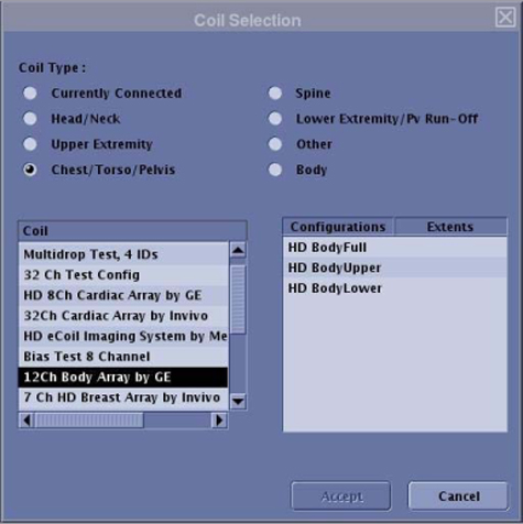 Figure 1. Currently Selected Coils Window on the Scan Screen