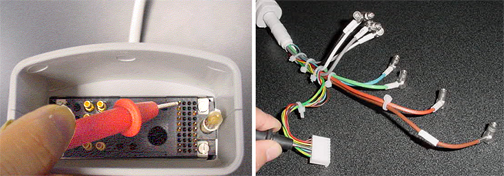 Step 2 – There are six pins (J1 to J6) in column J (see Figure 2) connecting to DC wires of the cable. Table 1 shows these pins and corresponding DC wires. Use a Digital Volt Meter (DVM) to check the resistance between the pin in column J and the corresponding DC wire (see Figure 3). The resistance should be 5.6 ± 0.5 ohms. If any resistance reading is not within this range, perform Cable Replacement.