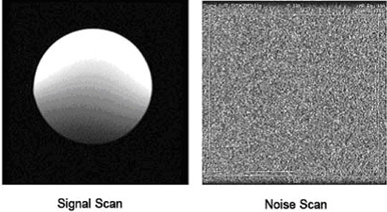 The Signal Scan is a Fast Spin Echo (FSE) sequence used to minimize susceptibility and B0 inhomogeneity effects. The signal scan must be run prior to the noise scan since the R1, R2, and TG values from the signal scan are used for the noise scan.