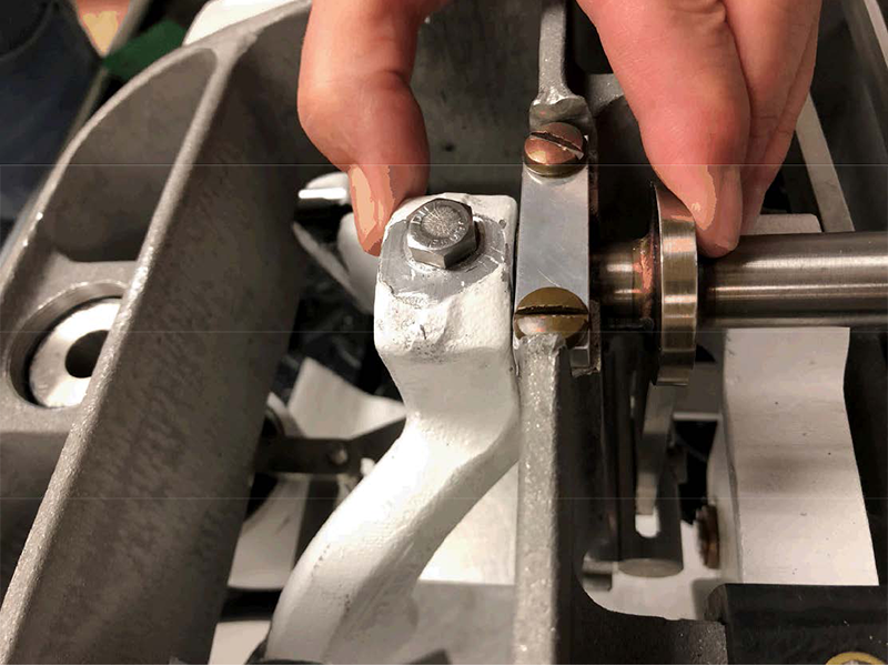 - Press the lower pedal to create space and replace the Shaft Linkage through the rear of the Table.