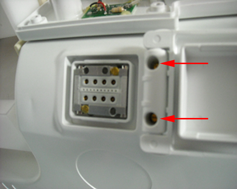 Using a 1/8 in. slotted screwdriver, remove the two external