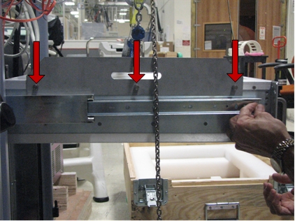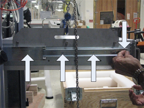 - Remove the lifting hooks from the hoist brackets.