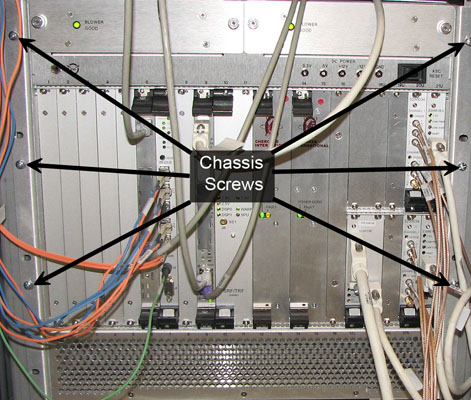 - Replace the six screws that hold the CAM chassis to the cabinet frame.