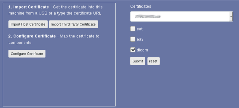 After importing the host or third-party certificate, it must be configured for DICOM operations.