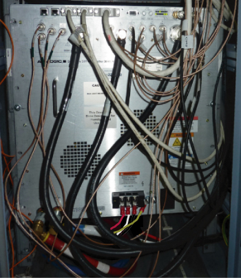 Disconnect the cables on the front of the dual drive RF amplifier, and disconnect the coolant lines.