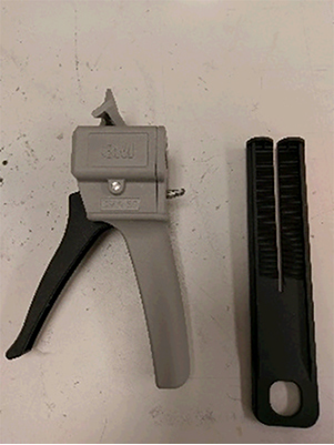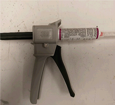 Assemble the glue gun applicator using the 1:1 plunger, following the manufacturer's instructions included in the box. Make sure to connect the glue and mixing nozzle to the applicator assembly.