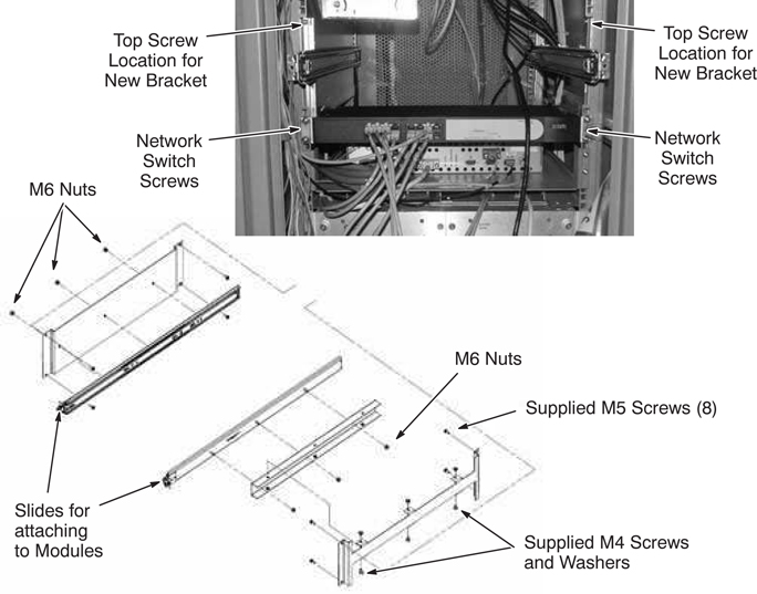 If a Sun 4100 is being replaced with a 4170 or 4170 M2 ICN, the module(s), the attaching brackets, and slides are removed. New brackets, slides, and ICN are installed.