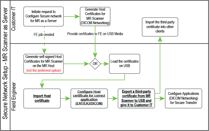 Note: Certificate import/export alone does not configure secure networking on the MR scanner. Individual applications must be configured to use the certificates. For detailed information on configuration, see the following: