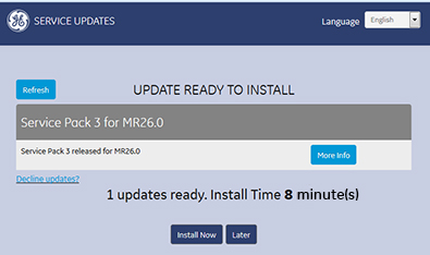 1. If service updates are available, click More Info to see details from the Read Me file contained in the service pack.