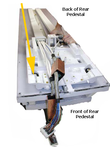 When looking at the LPCA from the front, the P1 and P2 coil connectors track is on the left side of the rear pedestal and is designated by two FRUs noted in Replacement Parts (see Table 6 for all cable types). The A-port and other associated cable tracks are located on the right side of the rear pedestal (see Table 7 for all cable types).