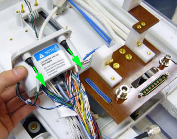 The sub-D plate contains two components on systems using the RRx receive chain (the A-port bezel and the microphone). To replace the sub-D plate, both components and their respective cable connections must be completely removed.