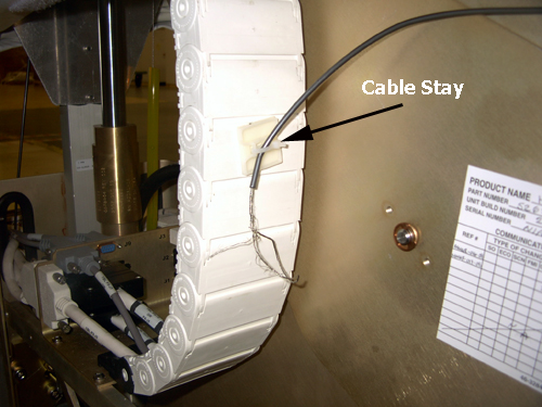 Figure 13. Path of Main Cradle Latch Cable behind P4 Cable Track