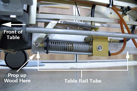 Thread the new caster into the caster base by turning it clockwise.Notice - Return the table to all four casters on the floor, and measure the height of the new caster to achieve a measurement of 8.2 in. (207 mm). Refer to Leveling Patient Table. Use a nonferrous level to check the levelness of the patient table, and make the appropriate adjustments.