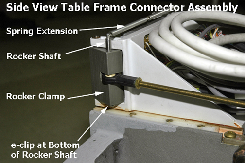 Figure 6. Table frame connector assembly Note: Before proceeding to the next step, first prepare the new hydraulic rotary pump for installation and place it within reach. Place absorbent towels underneath the work area. - Remove the e-clip from the bottom of each rocker shaft that holds the rocker clamp in place. If desired, remove the e-clip from the upper part of the rocker shaft above the rocker clamp.