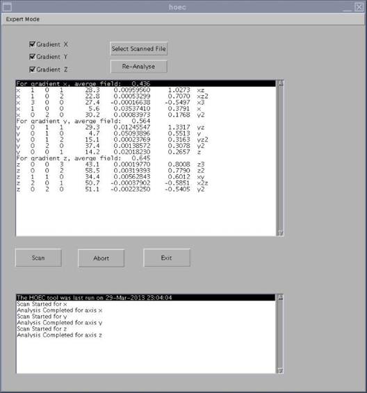 Gradient X/Y/Z boxesBy default, all three of these boxes are checked. When one of these boxes is checked, that gradient is included in the HOEC calibration.