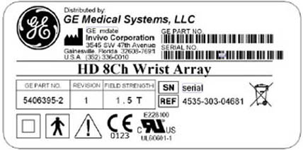 Figure 1. 1.5T HD 8-Channel Wrist Array Coil Label